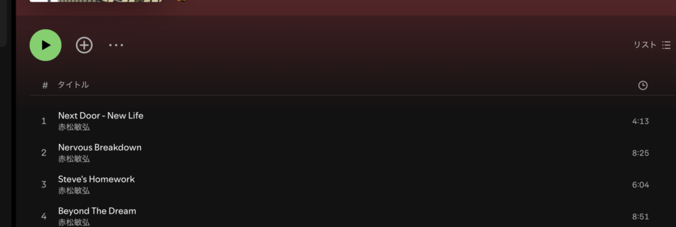 Spotifyの画面でアーティスト名を入力し検索ジャンルをアーティストにして検索を押します。 アルバムが表示されたら、アルバムを選択します。
