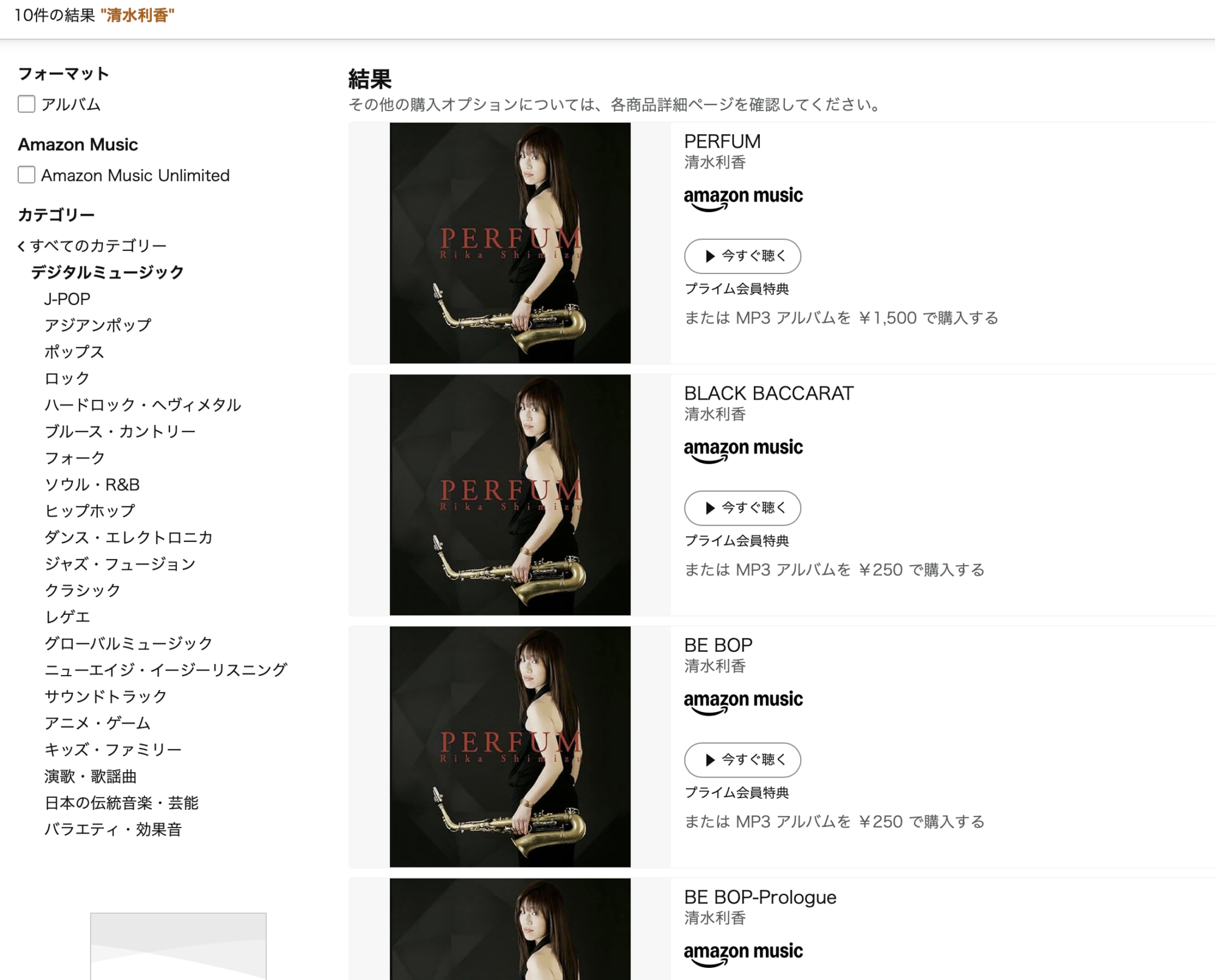 検索対象をデジタルミュージックにして